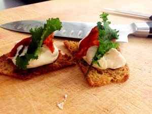 Valkosipulipatonkia ja tuorejuustoa (L)